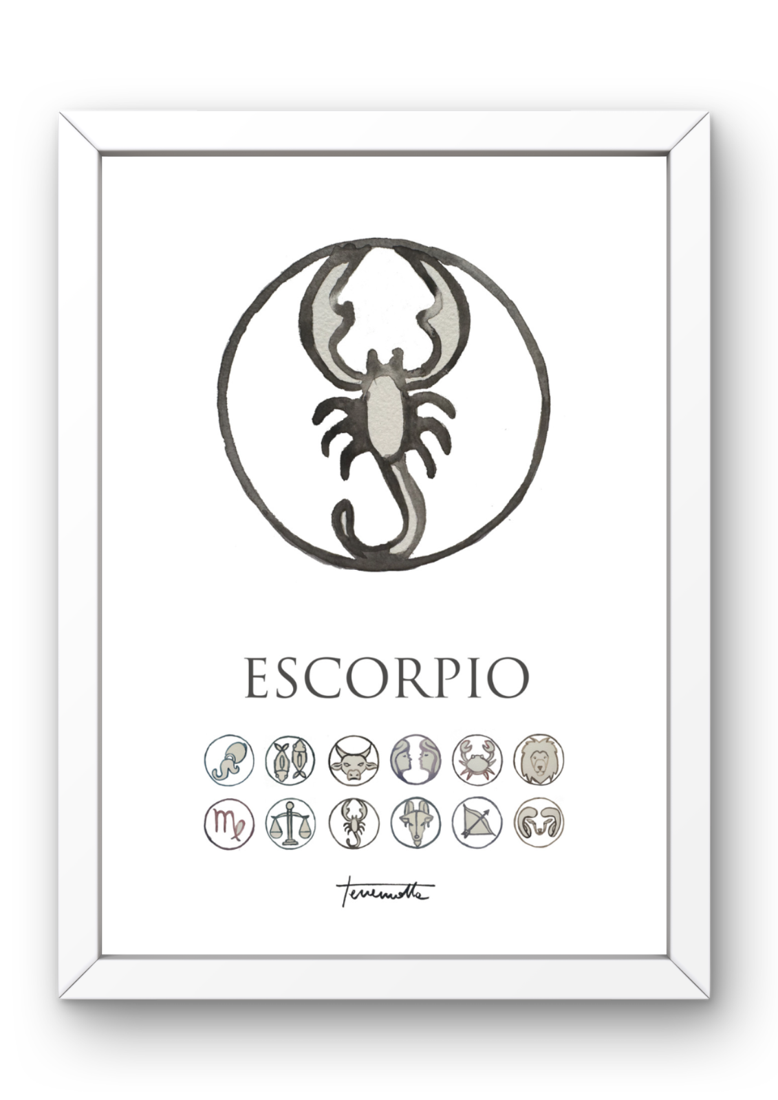 Descubre la intensidad y el misterio de Escorpio a través de nuestro arte astrológico. Cada obra, cuidadosamente elaborada en acuarela y digitalizada, captura la pasión y la profundidad del octavo signo del zodíaco. Con tonos oscuros y detalles cautivadores, estas láminas añaden un toque de intriga y poder a cualquier espacio. ¡Deja que el magnetismo de Escorpio transforme tu hogar con nuestra colección en Posterit