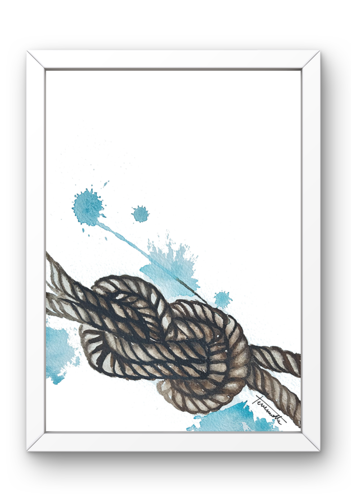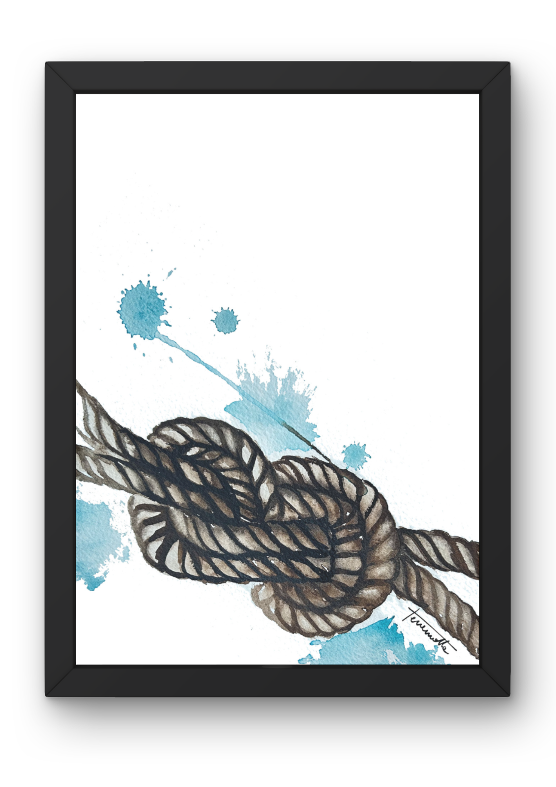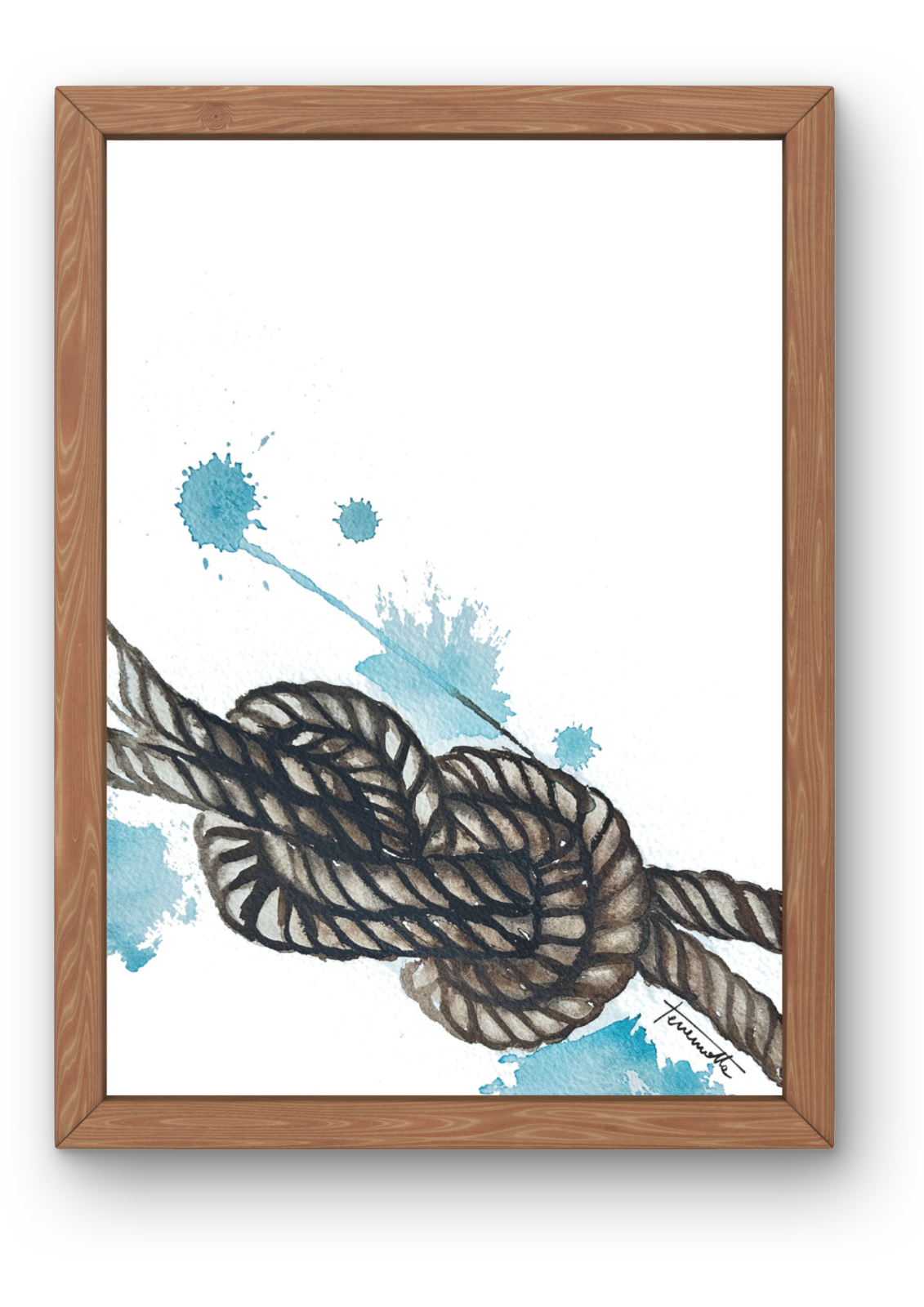 Sumérgete en el espíritu del mar con esta lámina de nudo marinero, una ilustración en acuarela que evoca aventura, resistencia y tradición náutica. Perfecta para decorar espacios con temática costera, hogares junto al mar o regalar a amantes del océano.