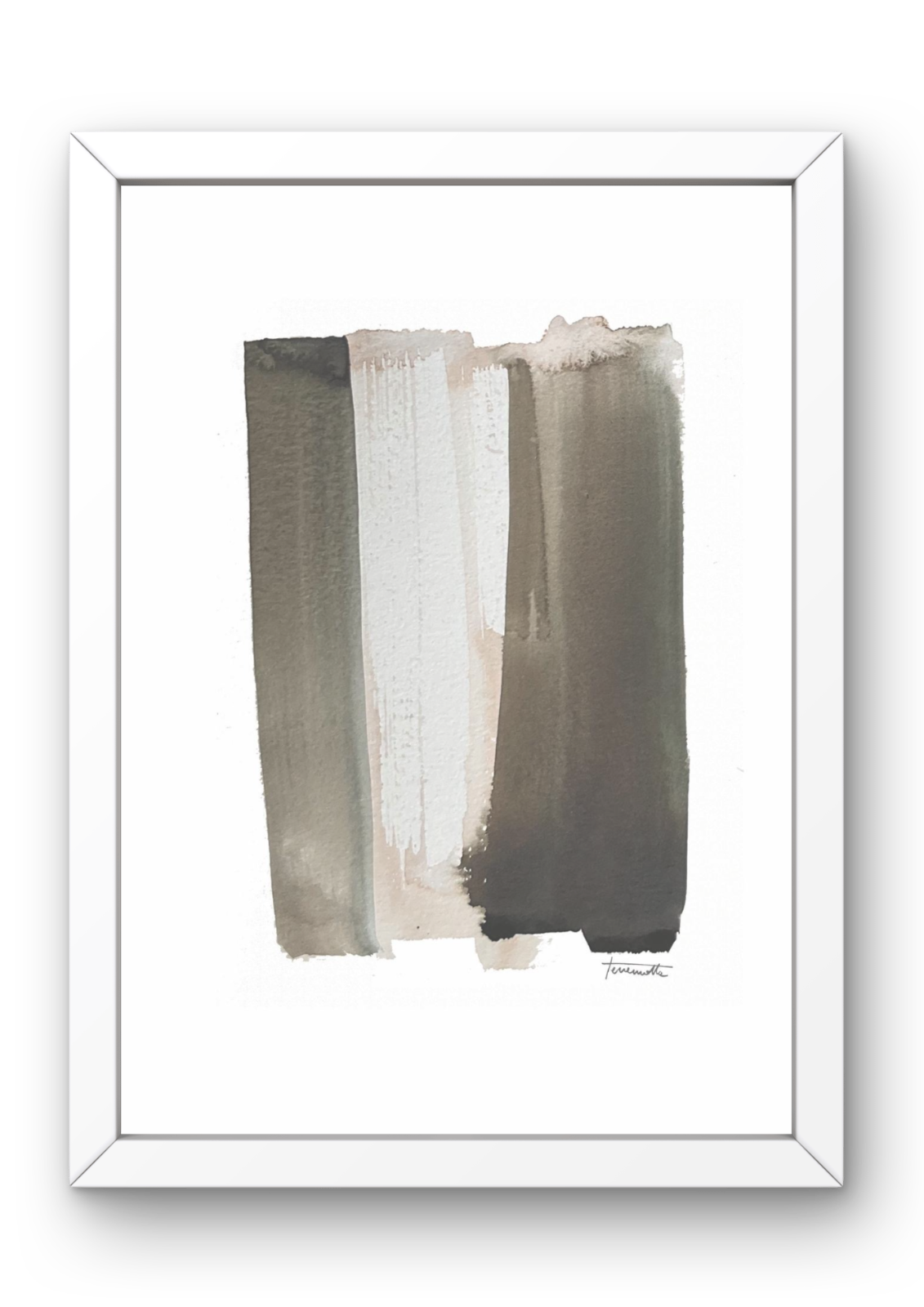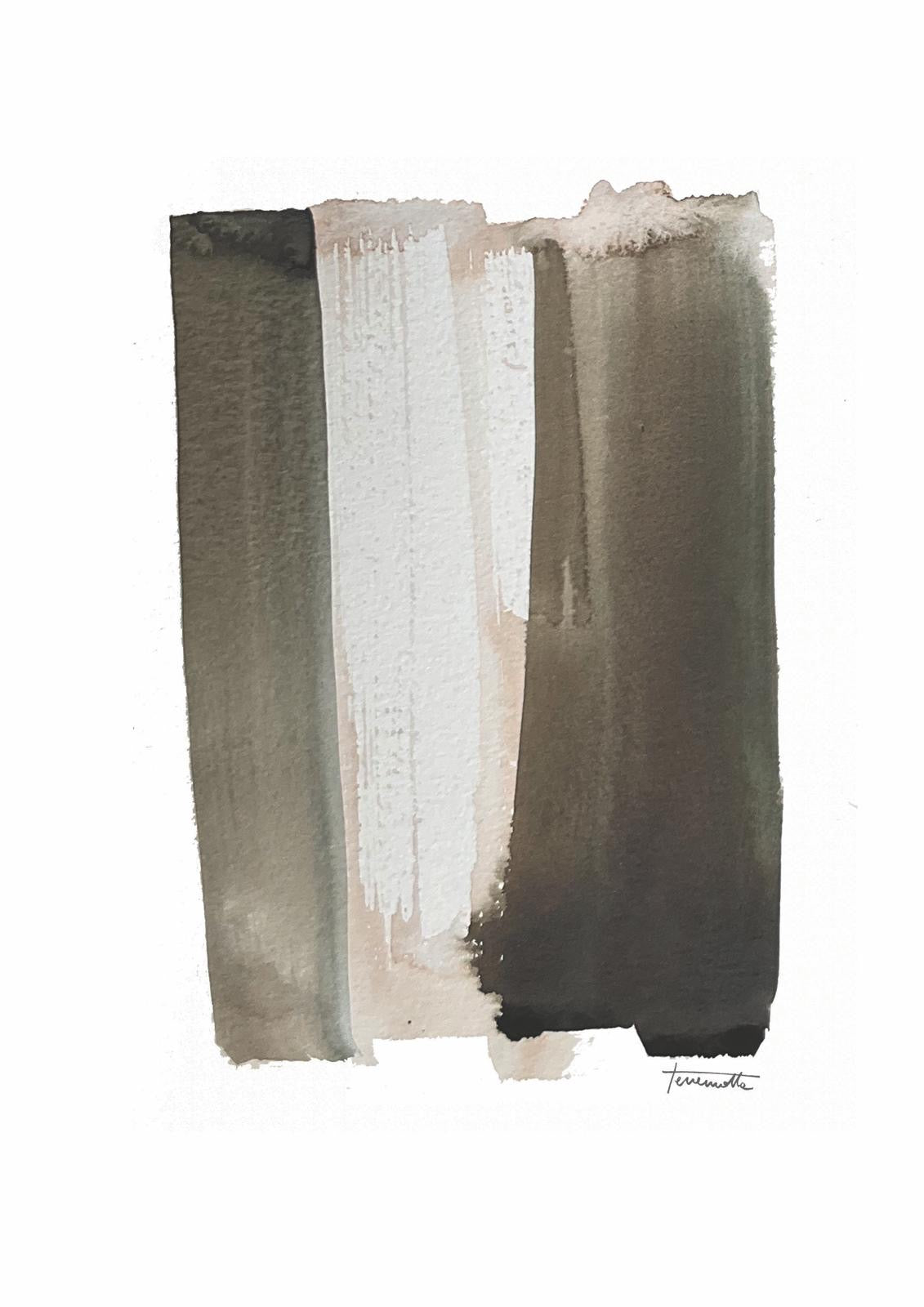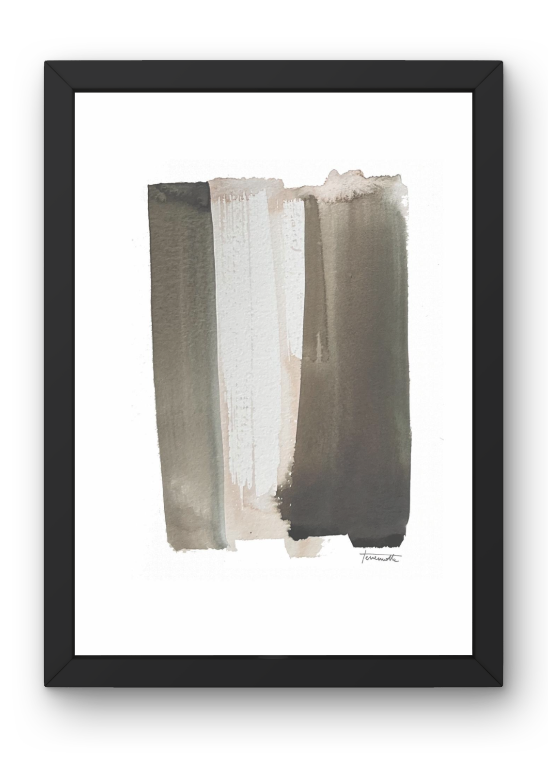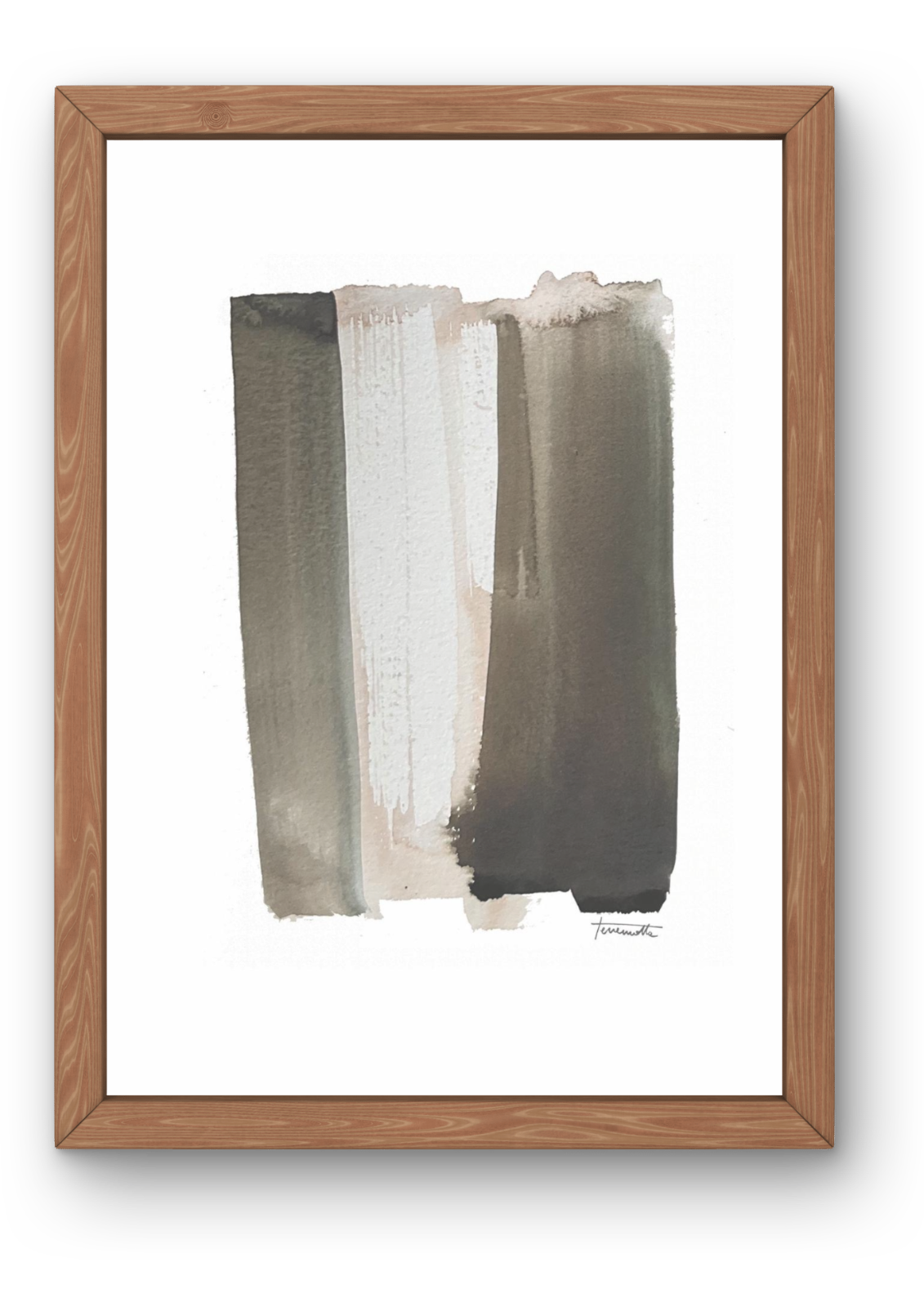 Explora la belleza de la imperfección con esta lámina abstracta en acuarela, donde las rayas desalineadas crean una composición elegante y equilibrada. Ideal para quienes buscan una pieza minimalista que aporte calma y sofisticación a su hogar u oficina.