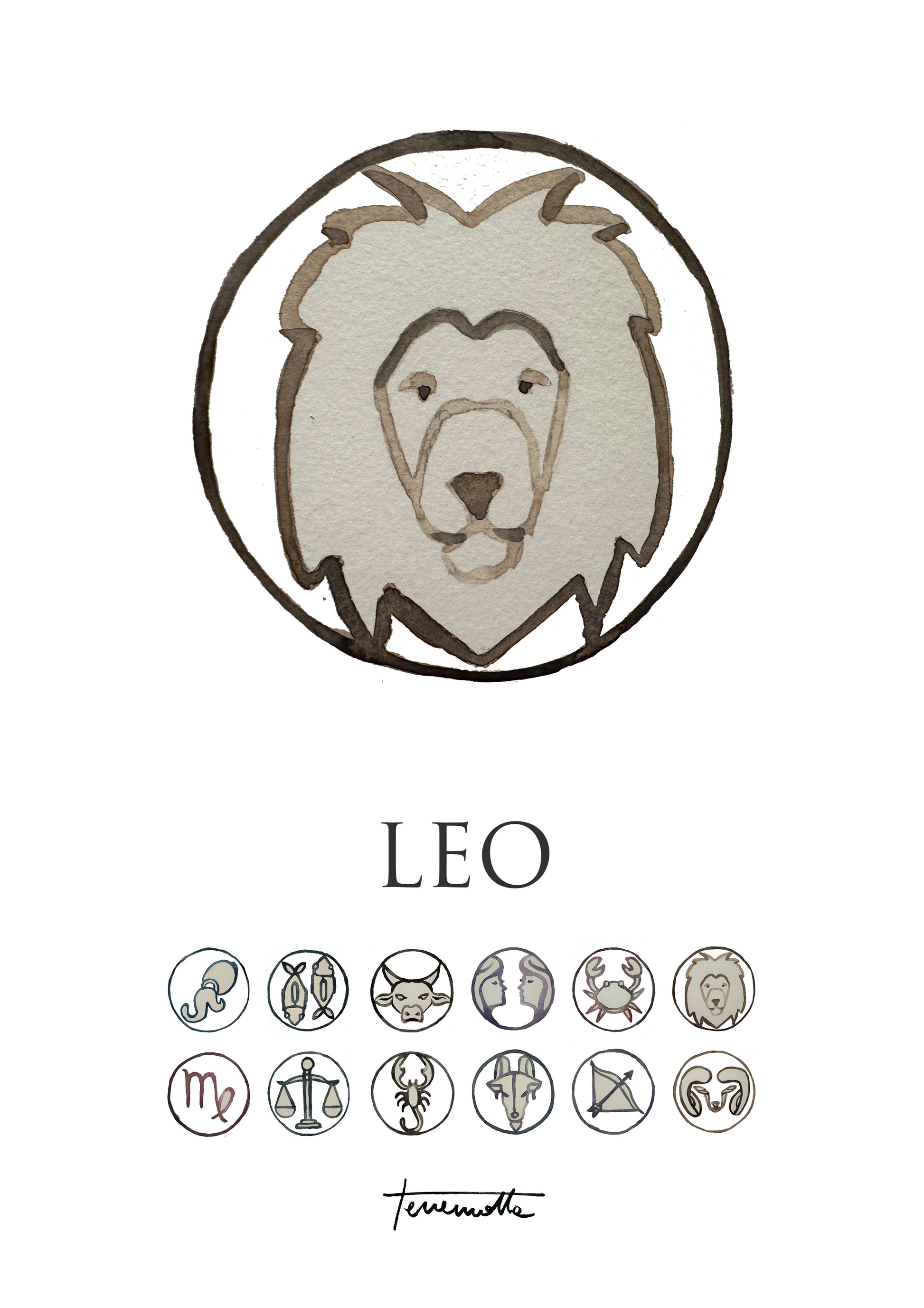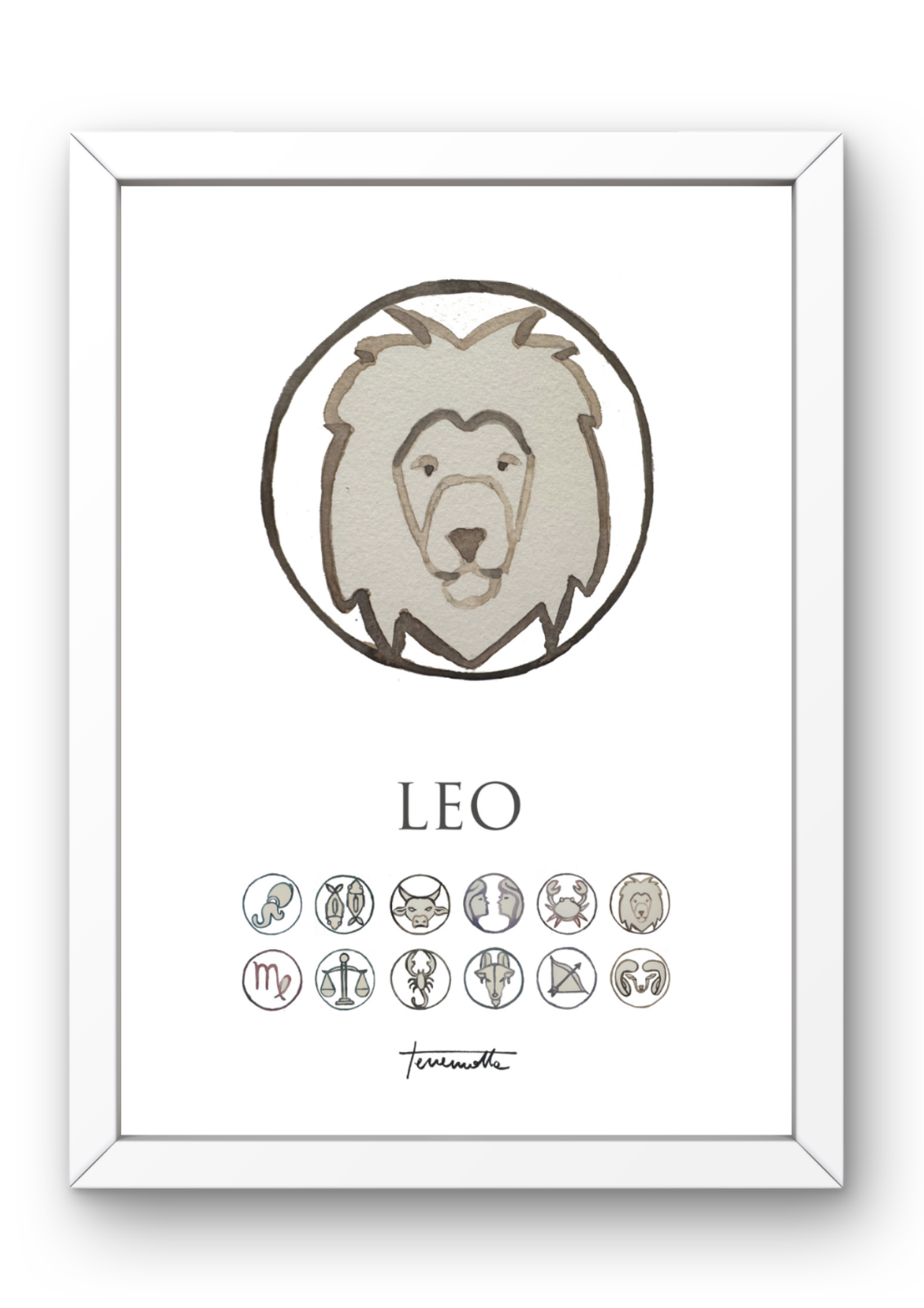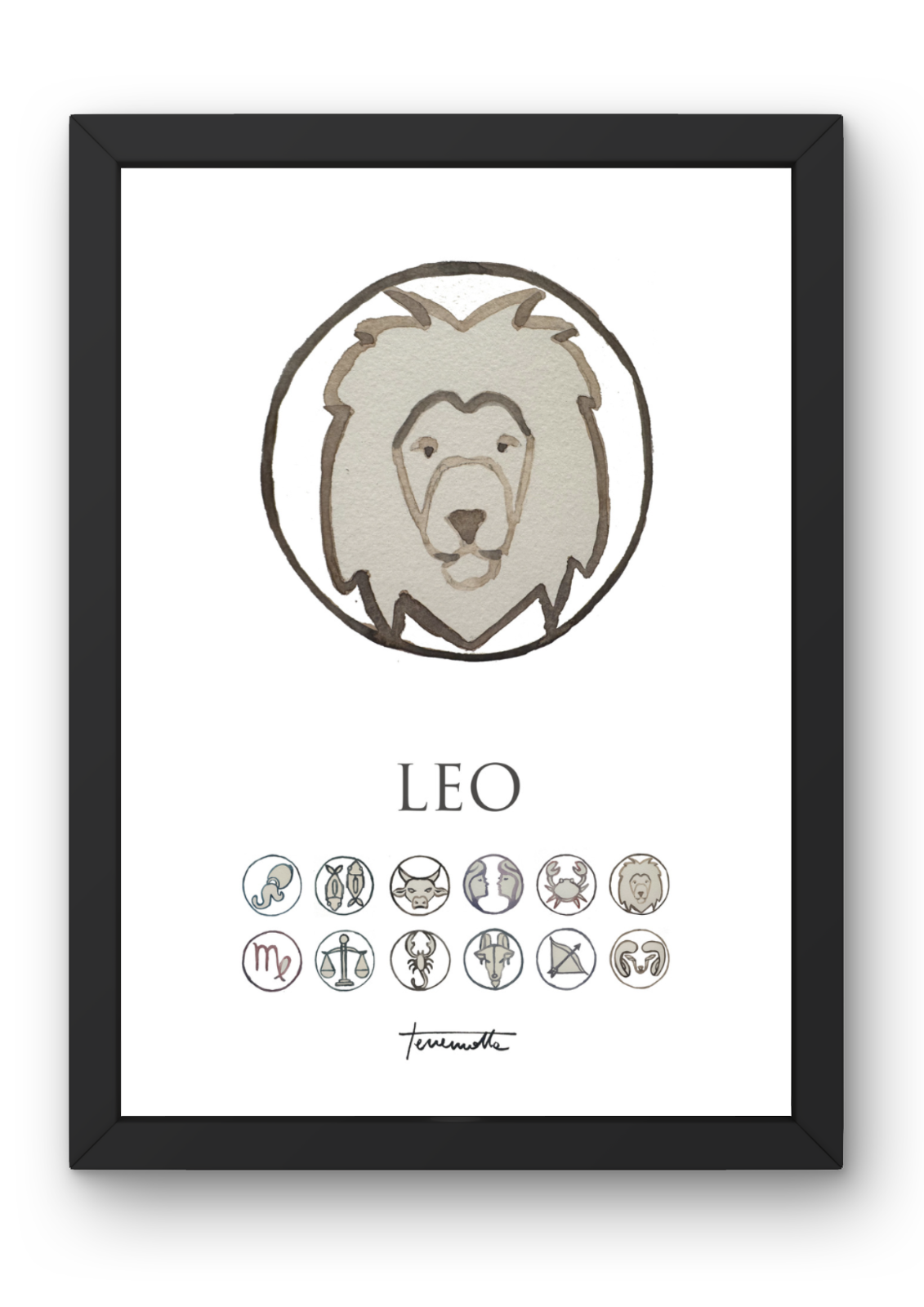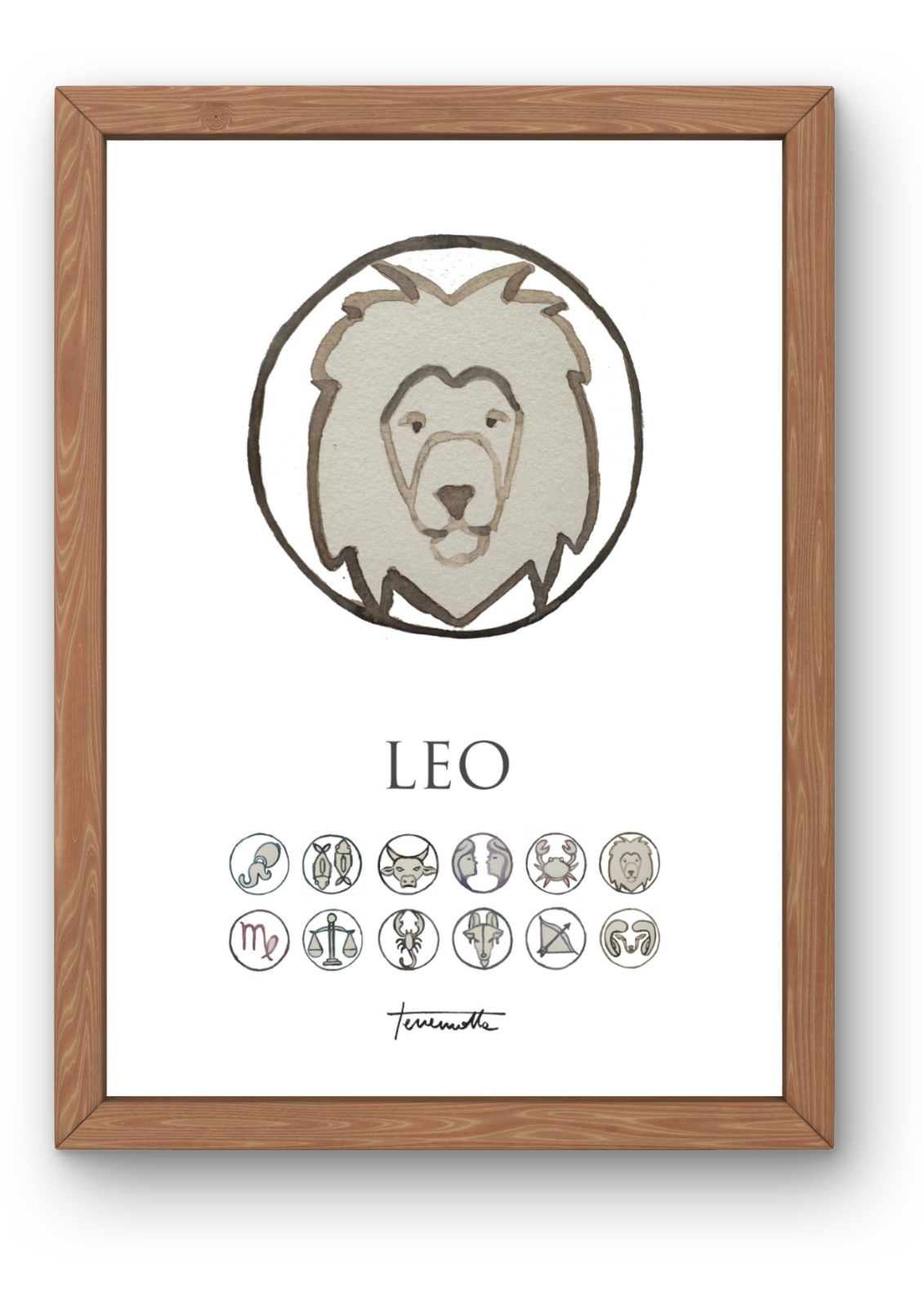 Sumérgete en el esplendor y la nobleza de Leo a través de nuestro arte astrológico. Cada obra, cuidadosamente elaborada en acuarela y digitalizada, captura el poder y la pasión del quinto signo del zodíaco. Con tonos cálidos y detalles majestuosos, estas láminas añaden un toque de grandeza y brillo a cualquier espacio. ¡Deja que el fuego creativo de Leo ilumine tu hogar con nuestra colección en Posterit